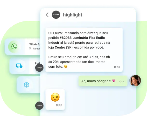 Antecipe necessidades disparando de forma proativa informações sobre status de pedido, rastreio, pesquisas de satisfação e muito mais