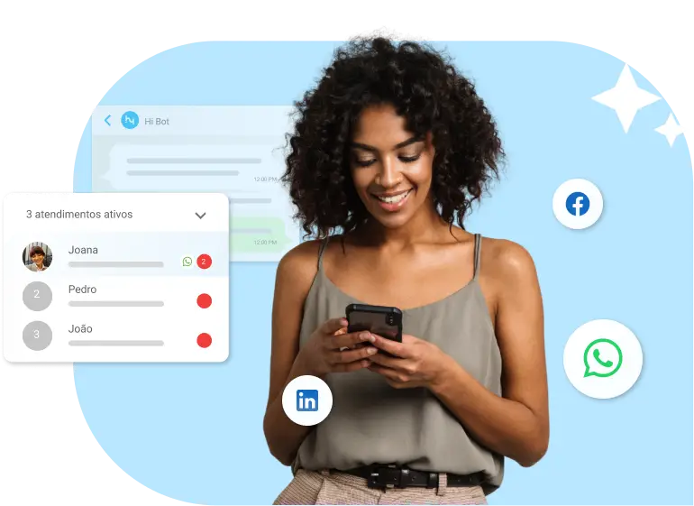 Economize recursos e tempo da sua equipe centralizando todos os pontos de contato em uma única tela! Gerencie atendimentos simultâneos, automatize dúvidas recorrentes e ganhe eficiência com a automação.