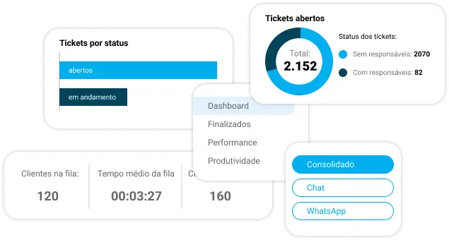 Gerencie em tempo real indicadores de atendimento, dispare pesquisas de satisfação após cada interação e garanta que sua operação funcione de maneira eficiente