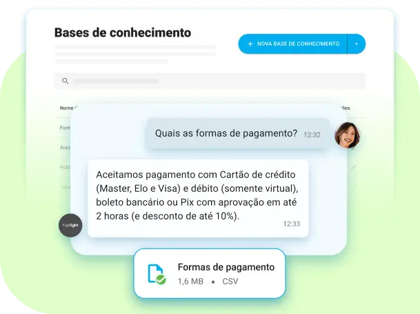 Conte com a IA para compreender e responder as dúvidas do seu cliente com base no contexto do seu negócio