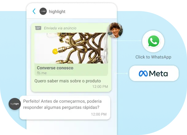 Crie campanhas conversacionais que atraem, qualificam e vendem! Com nossas automações, seu negócio aumenta a performance, gera vendas e eleva o ROAS enquanto monitora relatórios e rastreia a origem das conversões.
