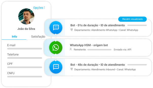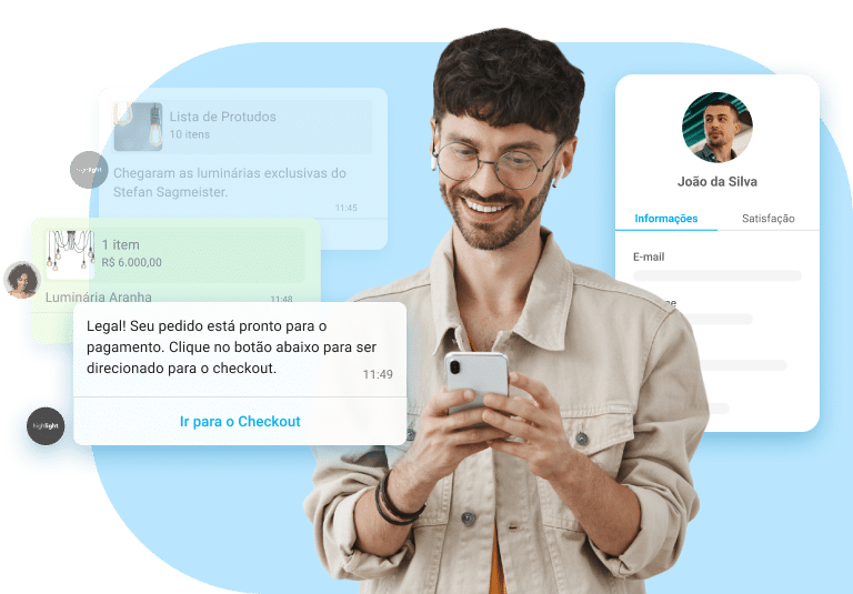 Tenha a visibilidade de toda a jornada do cliente em um único lugar. Desde conversas e compras até avaliações, compreenda a fundo o perfil do seu cliente acompanhando as interações com a sua marca.